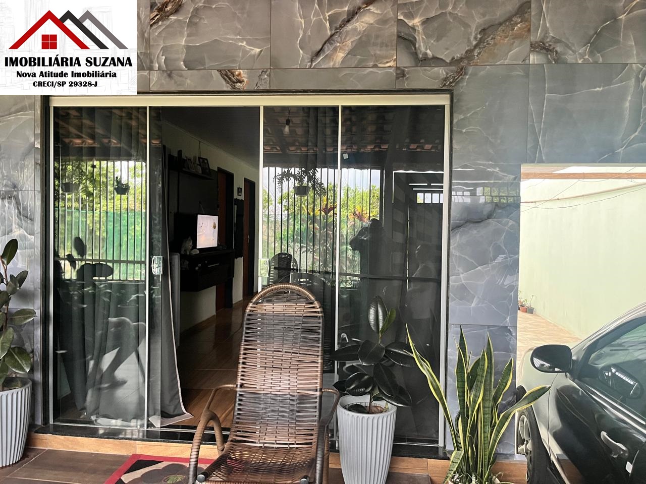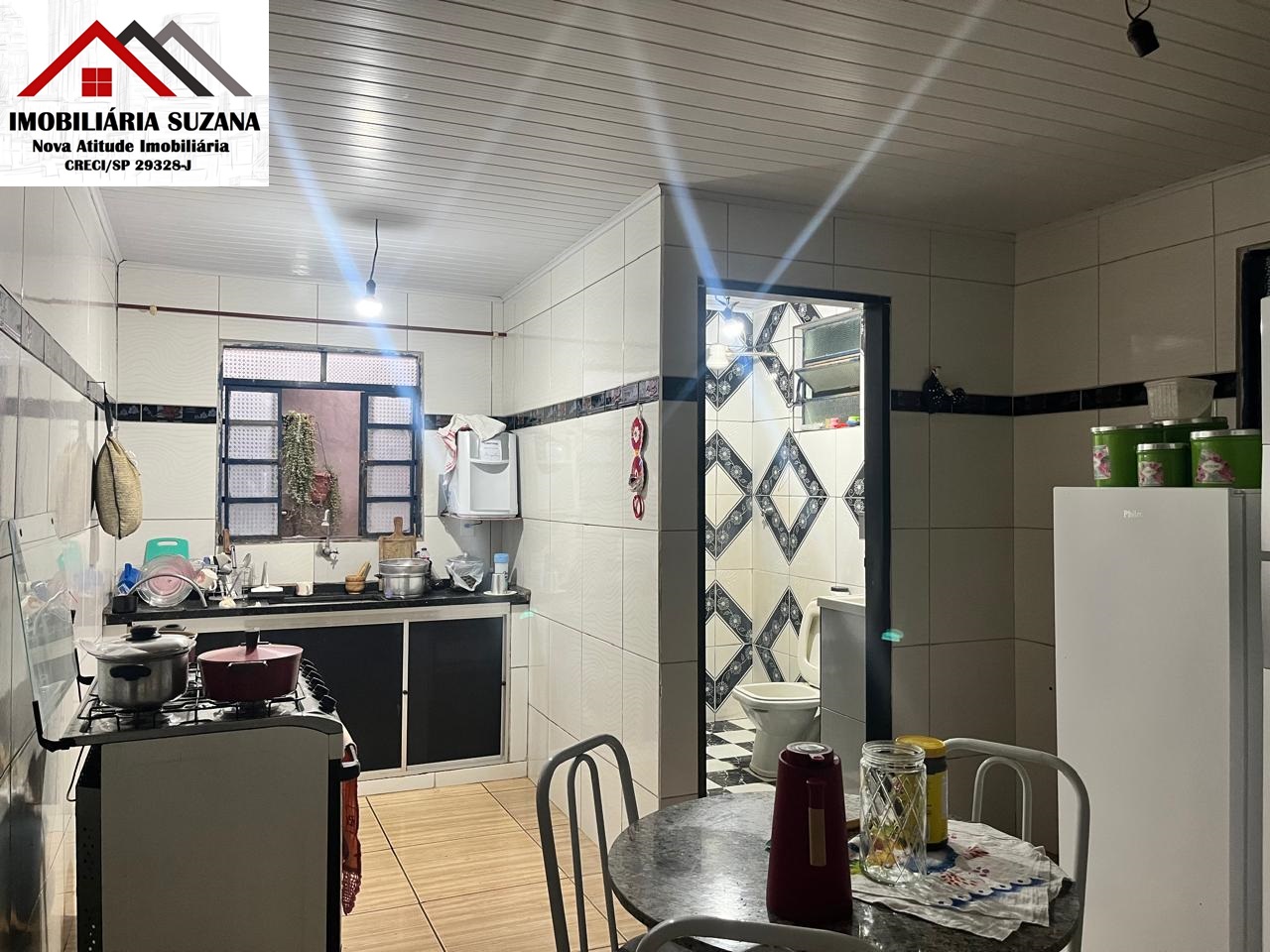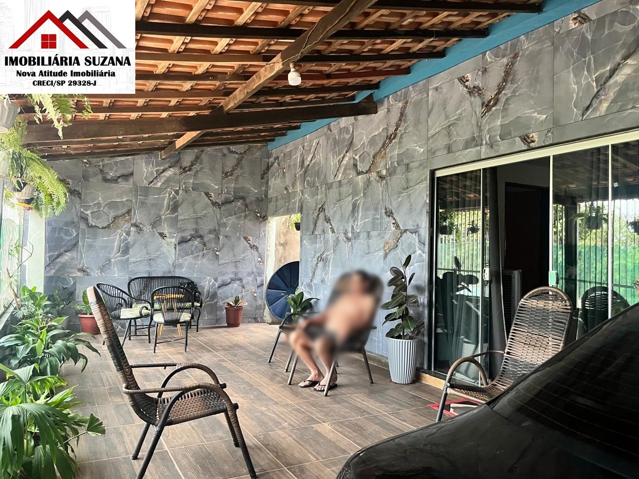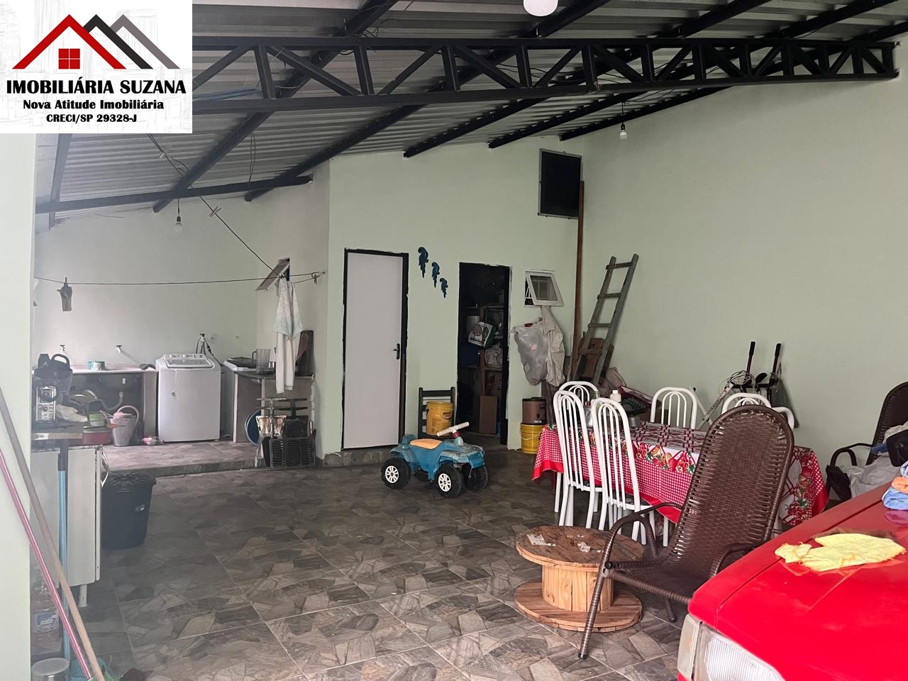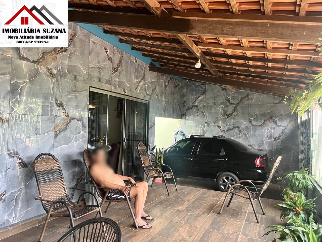 - Cobertura com telha tipo sanduíche; revestimento cerâmico na varanda