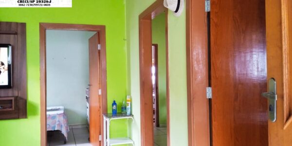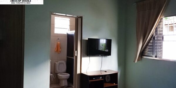 1 dormitório, 1 suite, sala, copa, cozinha, banheiro social, garagem descoberta, área de serviço coberta, varanda, dispensa, esquadrias em alumínio, 2 caixas d’água.